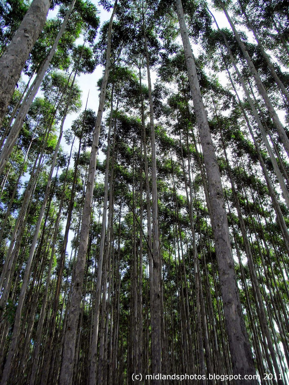 Continuing my fascination with the forests of the Midlands, I liked the patterns formed by the canopy foliage of these eucalyptus / blue gum trees. I'd been asked to scout for some locations by two contacts - one for some pre-wedding shots for a soon to be married couple, the other for a furniture location shoot where they don't want to use the usual boring room setting styling. I think both will shortly be here. I hope I get to see the results.